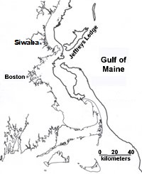 In their time (~8500BCE), the sea level within the Gulf of Maine was approximately 180 feet below its present height. The ancient geographic landscape appreciated 10,000 years ago exposed a substantial area of land that now lays quietly submerged 150 feet below the Gulf of Maine. The modern hallowed fishing grounds known as Jeffrey’s Ledge would have been appreciated as a substantial Atlantic island at the time. It was separated from the mainland on its southern end by a mere 1.5-mile-wide channel. They called this island Libo.